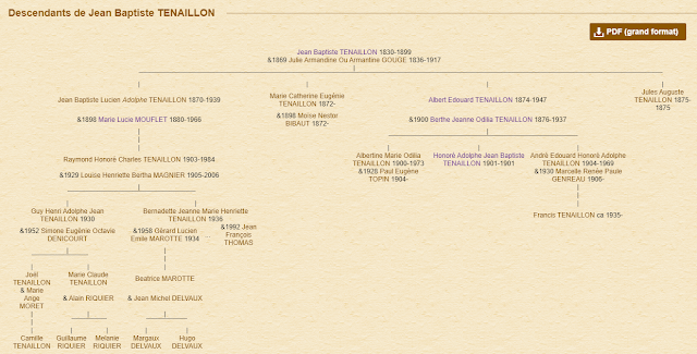 Jean Baptiste Tenaillon, cultivateur, né le 26 juillet 1830 à Roye, se marie le 13 octobre 1869 à Guivry avec Julie Armantine Gouge. Jean Baptiste est le fils de Jean Baptiste Honoré Tenaillon et de Sophie Joséphine Feupré, propriétaires à Roye.