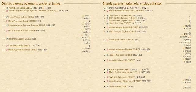 Ci-dessous, vous trouverez un lien menant vers la descendance de Marie Berthe Julienne Deblé: