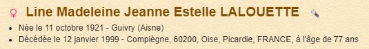 Naissance de Line Madeleine Jeanne Estelle Lalouette.